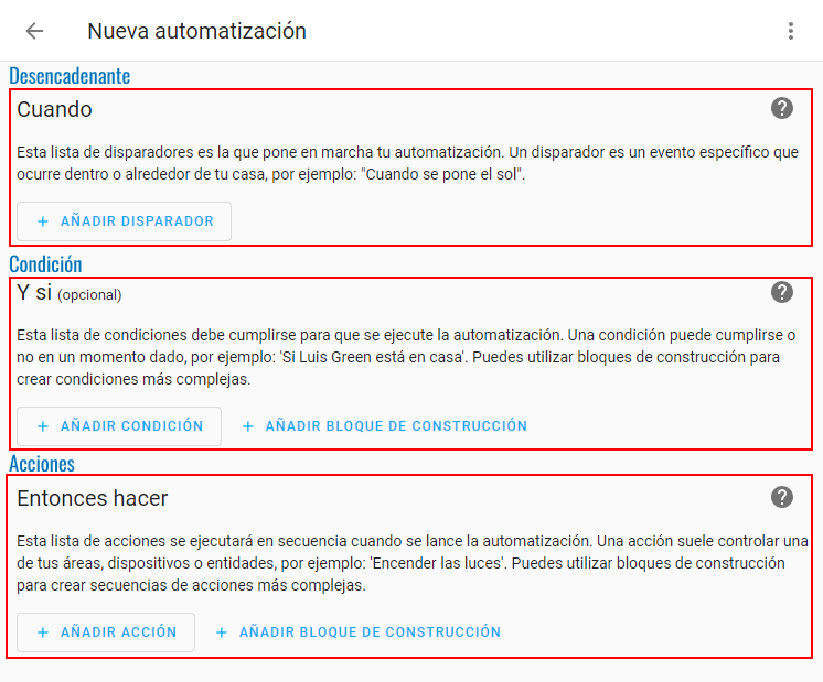 Y una automatización consta de 3 partes de las cuales sólo 2 son obligatorias: