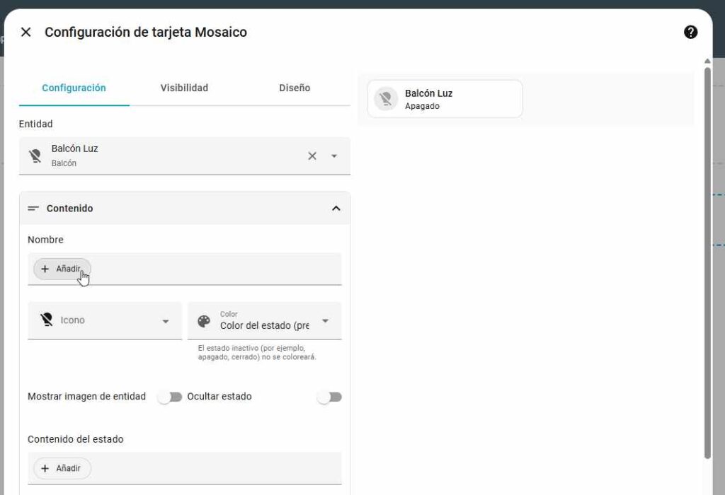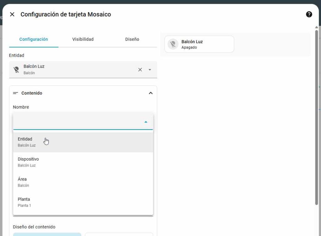 De este modo, si has puesto como nombre de una entidad Luz, vas a poder nombrar a esta entidad utilizando el área por ejemplo, para contextualizar dicha entidad dentro del panel de control. También cabe la posibilidad de poner un nombre personalizado si quieres.