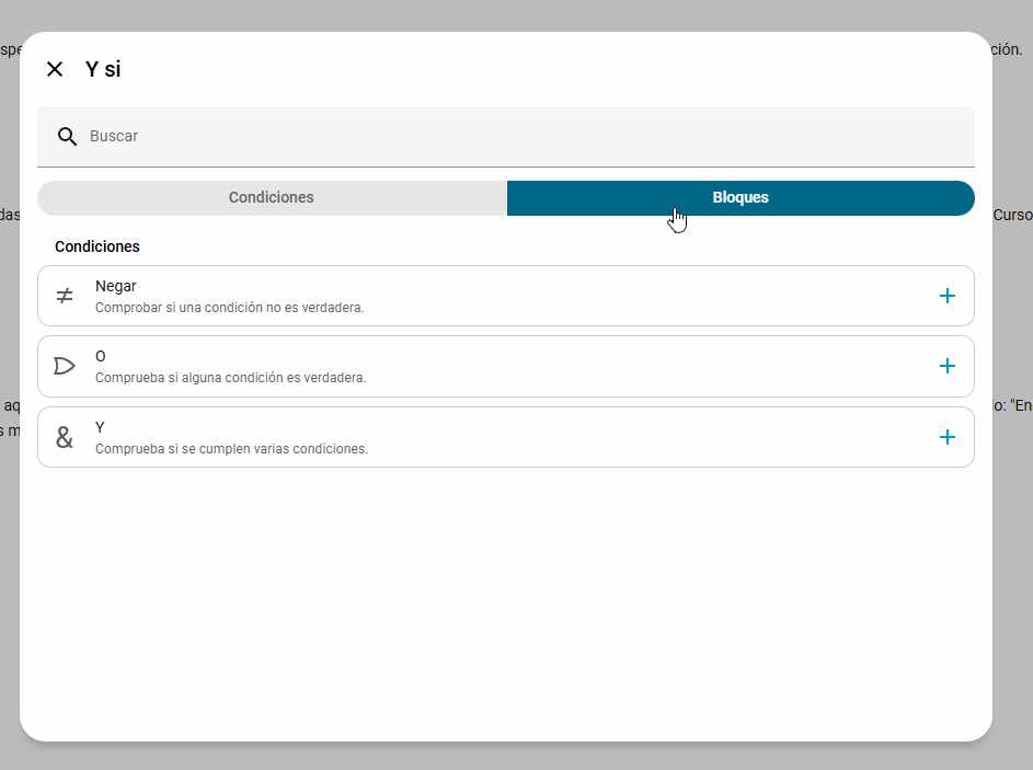 En este caso también se añade una pestaña Bloques donde tenemos los operadores negar, o e y.