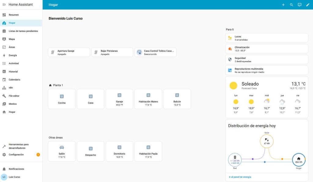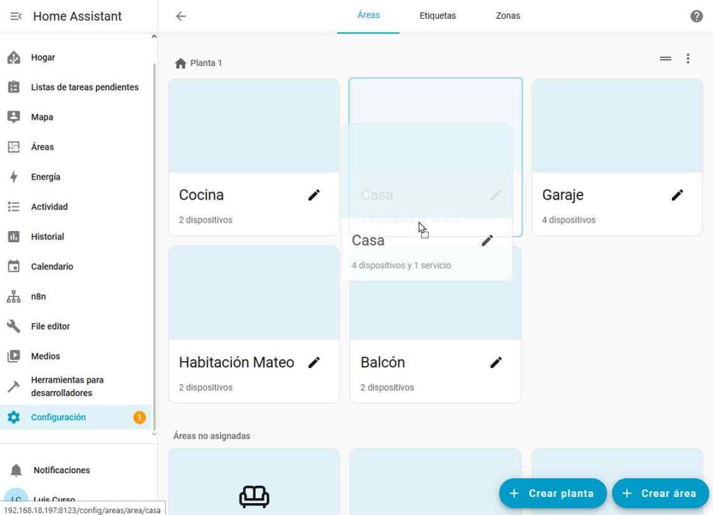 Dado que el nuevo panel «Home» basa su estructura en estas áreas, esta capacidad de ordenación es vital para determinar cómo se presenta la información en la interfaz principal, permitiendo priorizar las estancias más utilizadas.