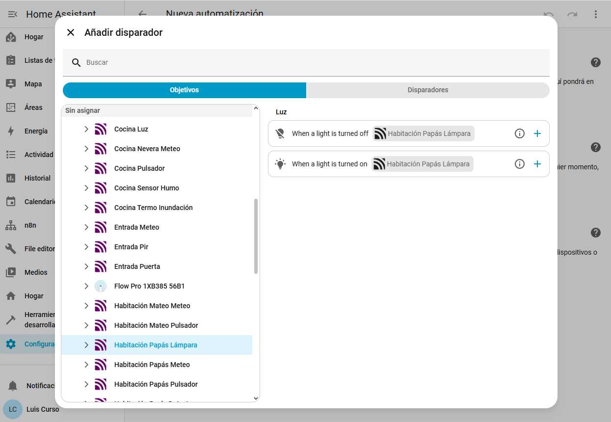 Por ejemplo, al seleccionar un dispositivo que contiene luces, el sistema propondrá disparadores basados en lenguaje natural y contexto, como «lanzar la automatización cuando se encienda la luz» o «cuando se apague». Este enfoque reduce la fricción y acerca la plataforma a un futuro donde la programación se asemeja más a una conversación natural que a la escritura de código.