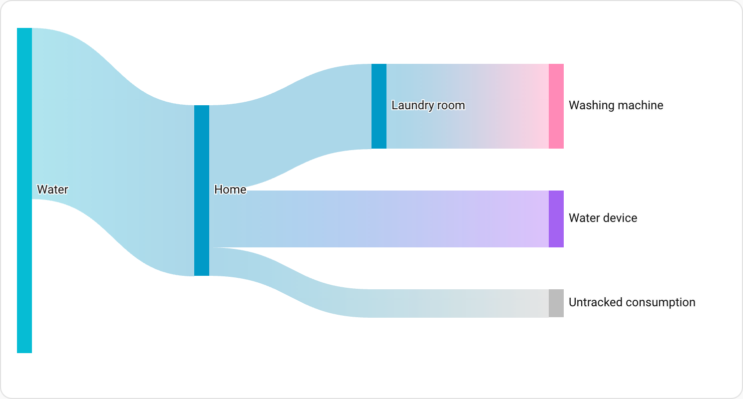 Esto significa que el sistema no solo muestra el gasto total, sino que permite desglosarlo si se dispone de sub-contadores. La visualización permite identificar qué áreas o dispositivos están consumiendo recursos, facilitando la detección de fugas o de consumos excesivos, como duchas prolongadas.
