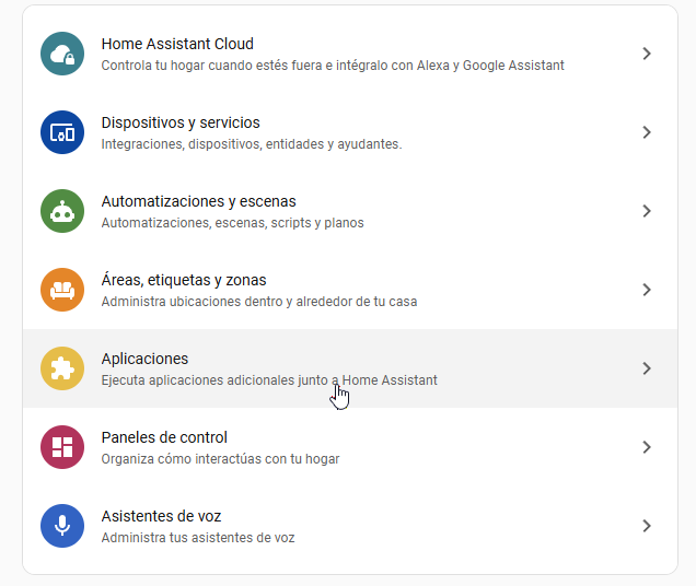 Aplicaciones: Son programas independientes, software extra que corre junto a tu Home Assistant. Hablamos de bestias pardas como Node-RED, Zigbee2MQTT o Frigate.