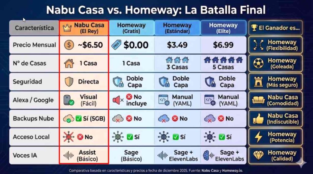 En resumen, la elección entre Home Assistant Cloud y Homeway depende principalmente de tu escenario de uso: