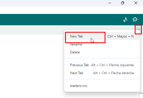 Dentro del IDE de Arduino creamos dos nuevos archivos con los mismos nombres que los archivos de configuración a través de la opción New tab.